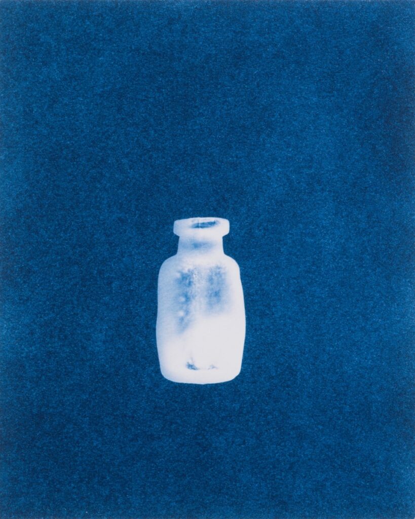 Elin o’Hara Slavick, A-Bombed Bottle, Hiroshima, from After Hiroshima, 2008, Cyanotype, 9.75 x 7.875 in., Gallery Purchase