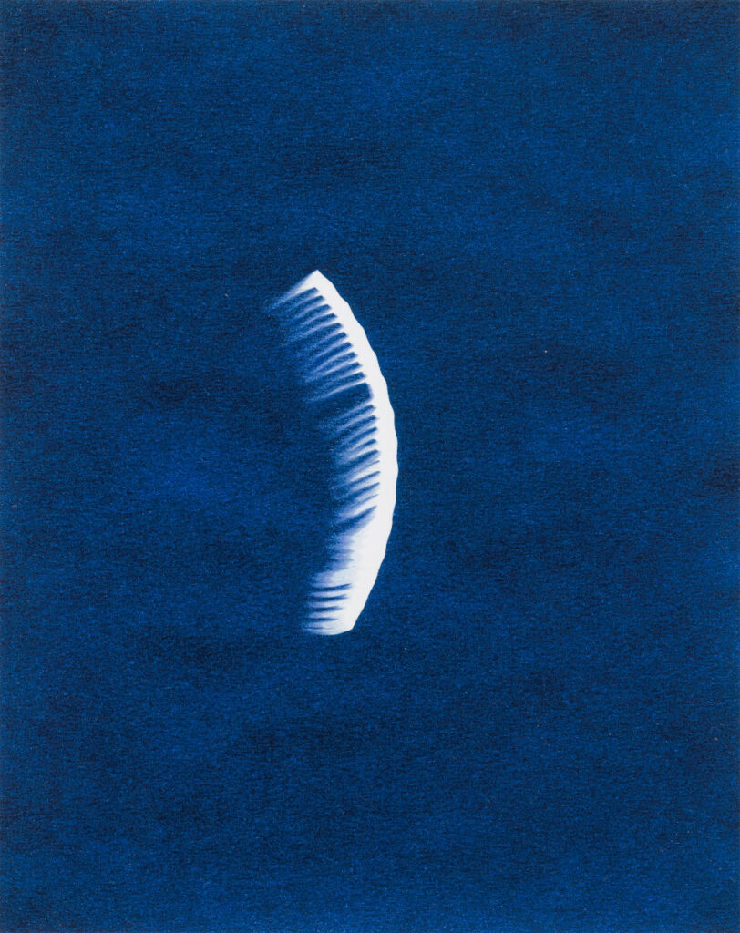 Elin o’Hara Slavick, A-Bombed Comb, Hiroshima, from After Hiroshima, 2008, Cyanotype, 9.75 x 7.875 in., Gift of the Artist