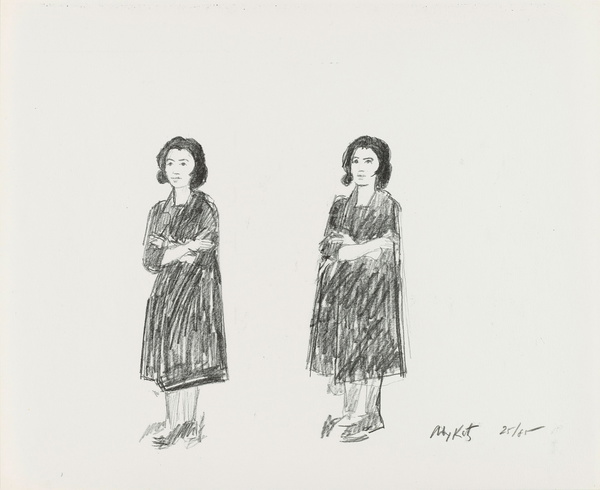 So, when I learned that I could have an original Katz in my dorm room, I literally ran to claim it first. Thankfully, no one else wanted it. I don’t know who the figures in the work are, but I enjoy creating new theories whenever my gaze meets the lithograph. Are they the same woman at different ages? A pair of twins? A mother and a daughter? I have no idea. I hung it above my desk so I can look at it often and wonder. The piece has given my room a special atmosphere and has helped me appreciate my new home more.
