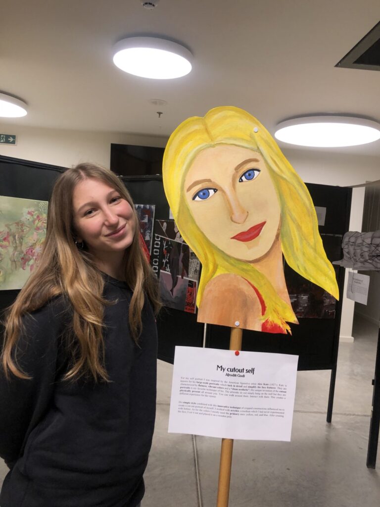 Although this piece is small and simple, it was my first choice from the ArtMate program. Many people might wonder why I chose a work without color instead of something more aesthetically pleasing or famous, such as a piece by Warhol, Dalí, or Miró. I first encountered Alex Katz’s work four years ago at his solo exhibition at the Guggenheim in New York. I was drawn to the simplicity and bold colors of his cut-out portraits, and I found his style both unique and aligned with my own. I even used Katz as an inspiration for my self-portrait in my IB Visual Arts class during high school.