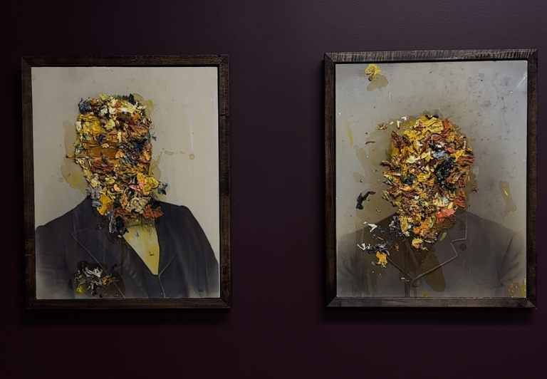 Amir Fallah, Ancestors II, 2015, C-print, acrylic, and dried paint skins, 20 x 16 in., Gallery Purchase