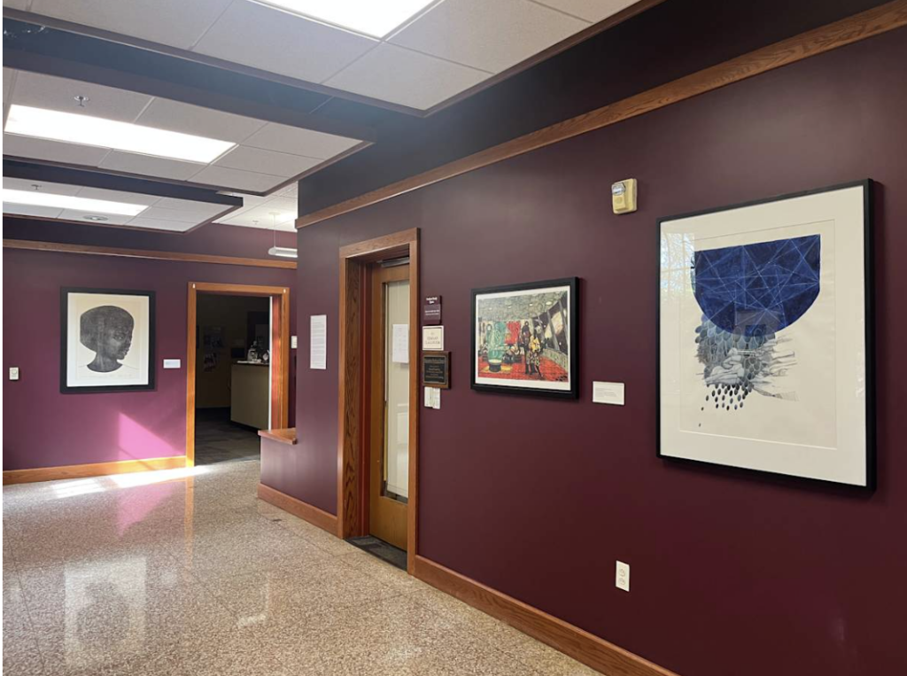 This demographic project has inspired an exhibit that is currently on view in the Cunningham Theater Center. The exhibition is titled Acquiring with a Purpose: Reimagining Davidson’s Art Collection. Curated by Gallery Interns Sabrina Bonavita, Charlotte LaBenne, and Heidi McGannon, the exhibition highlights works in the collection by artists from historically underrepresented groups. This show features artists whose identities include Black American, Botswanan, Canadian, Iranian, and Syrian, as well as female, LGBTQ+, and non-binary. By centering these voices, the exhibition underscores the Galleries’ ongoing effort to broaden representation within the collection and invites viewers to reflect on how race, gender, and sexuality shape both artistic expression and institutional narratives.